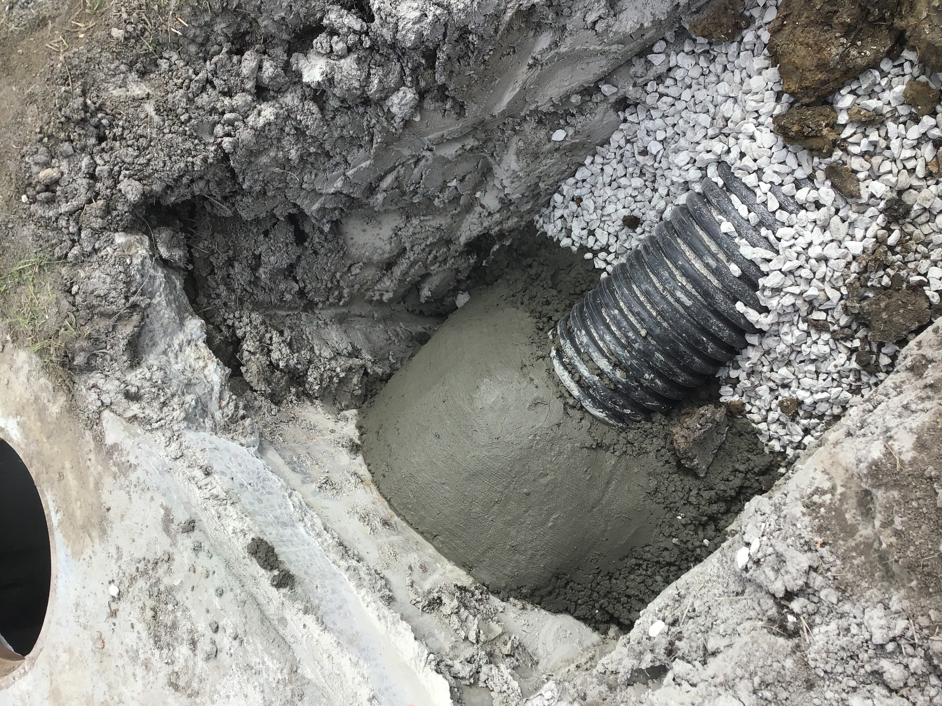 Action required: Provide cleanout near edge of foundation.