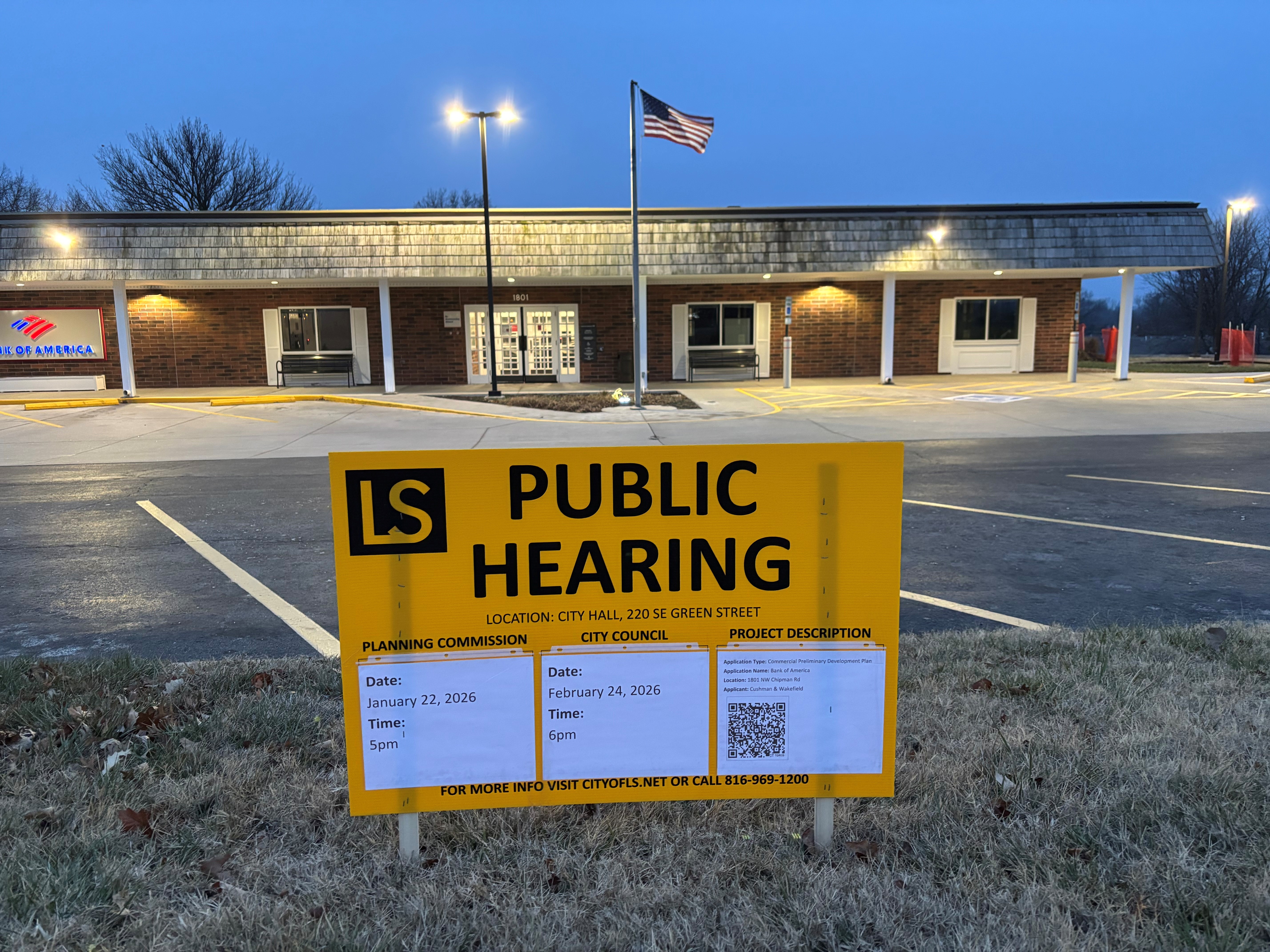 BUFFER/SCREENING REQUIREMENTS. The landscape plan depicts a high-impact landscape buffer being provided along the west, south and east sides of the subject site, inclusive of a 6'-tall opaque wall or fence, all in accordance with the current requirements of the UDO. The current bank facility only has opaque fence screening along the west property boundary where the subject site is in closest proximity to adjacent John Knox Village residential uses. The existing bank facility is separated from other John Knox Village residential uses by a large parking lot and a private street to the east and south, respectively, and currently has no screening in those directions. Have any discussions been held with John Knox Village about the proposed screening along the south and east sides of the bank site to see if they have an opinion or preference of the type of screening provided between the uses or if they want the screening provided at all since the existing facility has no screening in those two areas now? There is currently a pedestrian connection between the bank site and the John Knox Village parking lot to the east that is shown to be maintained with the proposed redevelopment. Having only landscaping and no fence along the east site boundary would maintain open sight lines between the adjacent uses and make for a more comfortable and inviting pedestrian environment. Staff could support a modification request to request relief from the fence component of the buffer/screen along the east property boundary if John Knox Village is amenable.